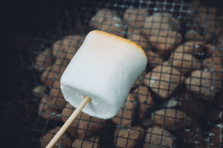デザートも忘れてはいけません。串に刺したマシュマロを軽く炙ると、外は「カリッ」と中は「トロトロ」の絶品スイーツになります。