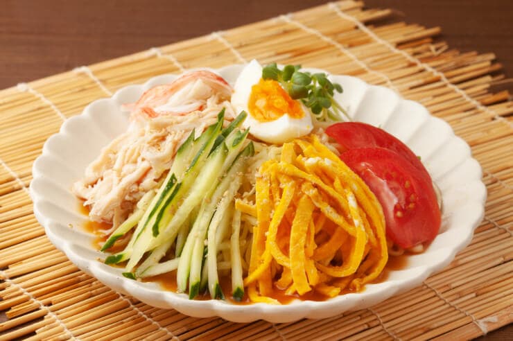 冷やし中華は、夏の定番です。ハム、卵、きゅうりなどを乗せることで、たんぱく質とビタミン、ミネラルがバランスよく摂取できます。