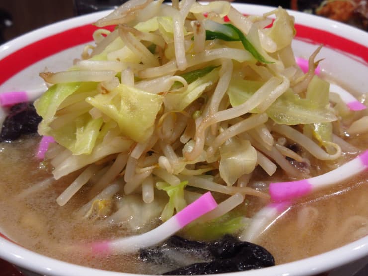 - 具材:キャベツ、もやし、にんじん、豚肉など炒め野菜が主役
