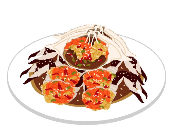 カニ味噌や卵が染み出したタレをご飯にかけると絶品。