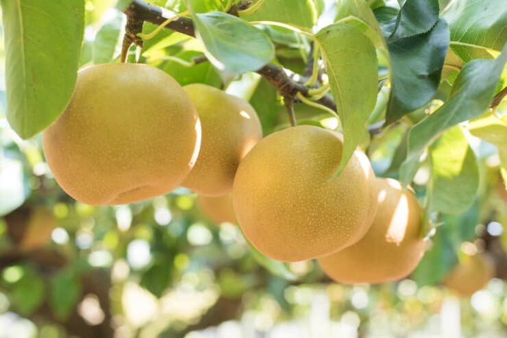 - 青梨(あおなし) … 皮が青緑色で爽やかな甘さ。代表的なのは「二十世紀」「新興」。