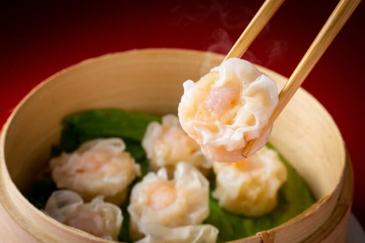 - エビ入りシュウマイでプリッとした歯ごたえを楽しむ