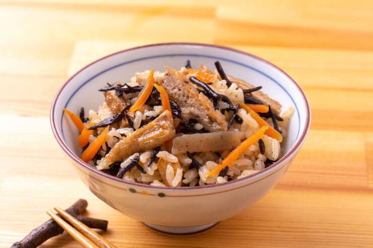• ひじきごはん:白米に戻したひじきと人参・ごまを混ぜて炊くだけ