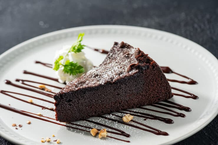 コーヒーや紅茶との相性が抜群。ビターなガトーショコラはカフェラテと一緒に楽しむのがおすすめ。