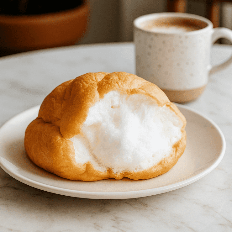 卵白を泡立てて焼き上げる、ふわふわで雲のような食感のスイーツ系パン。SNSで火がついたヒット商品。