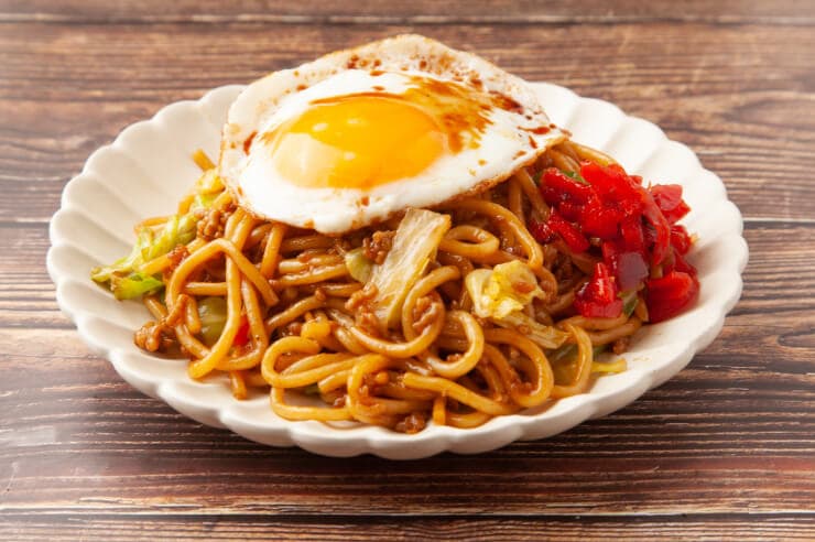 - 横手やきそば(秋田):目玉焼きをのせて提供
