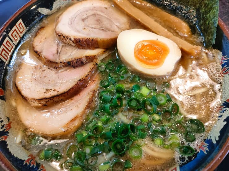 - 豚骨+鶏ガラをベースにした豚骨醤油スープ。
