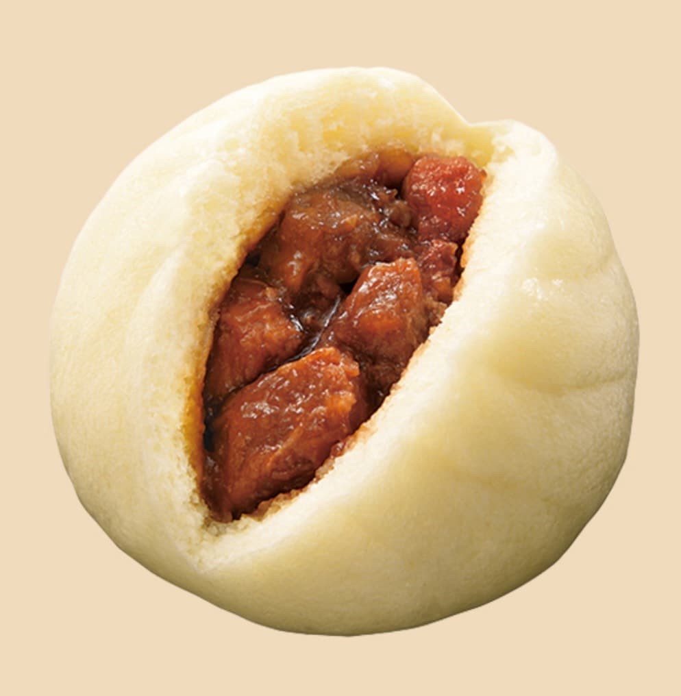 厚切りの豚の角煮を甘辛ダレで煮込み、ふかふかの中華まんで包み込んだ一品。