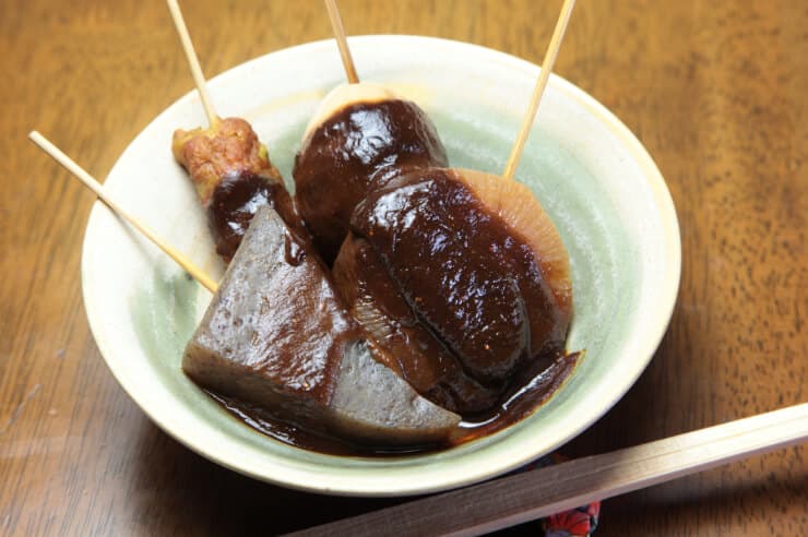 名古屋のおでんは、赤味噌だれをかけて食べる独特のスタイル。