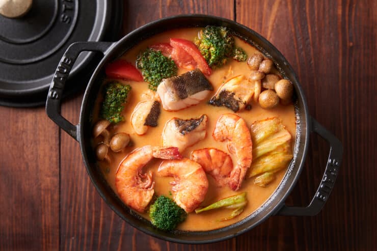 【ポイント】ミルクベースにほんのりスパイスでカフェ風の優しい鍋。