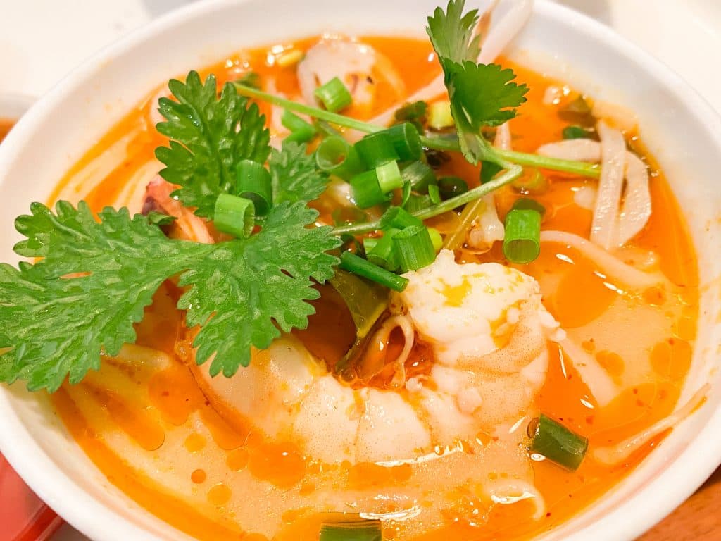 また、スープの中には麺も加えられており、日本食でいう「ラーメン」に近い料理です。日本のラーメンとは異なり、トムヤムクンは非常に辛い料理です。