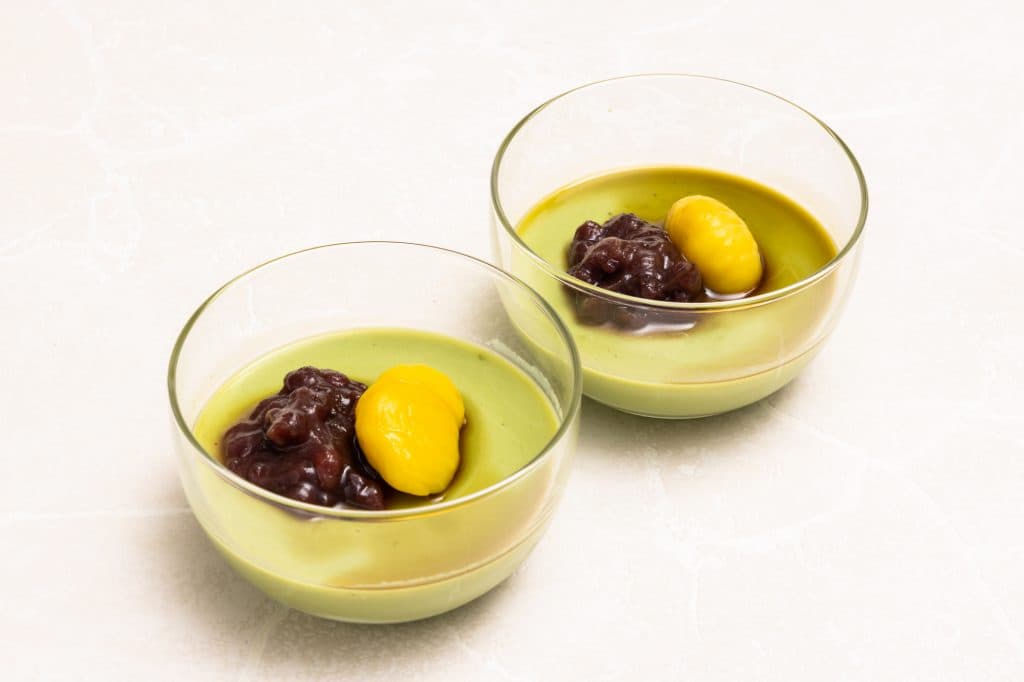 そのため、抹茶の風味がデザートに深みを与えて、豆腐の自然な甘みが抹茶の苦みを和らげます。