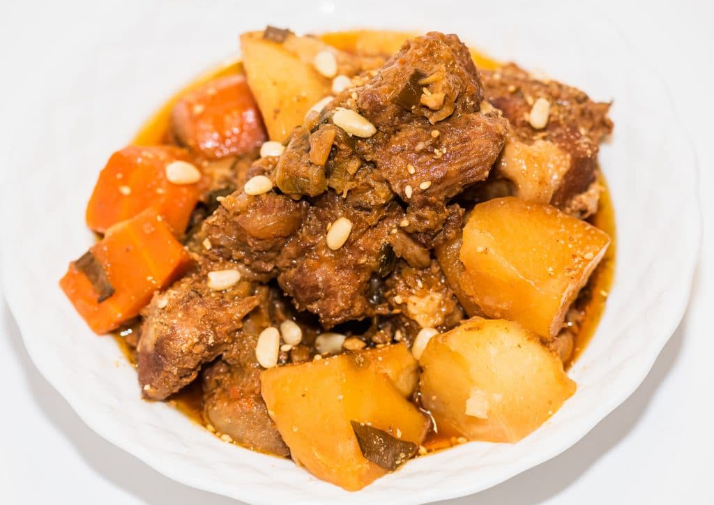 「カルビチム」とは、骨付きカルビを、しょうゆや砂糖などベースの甘辛いタレで長時間蒸し煮にした料理です。
