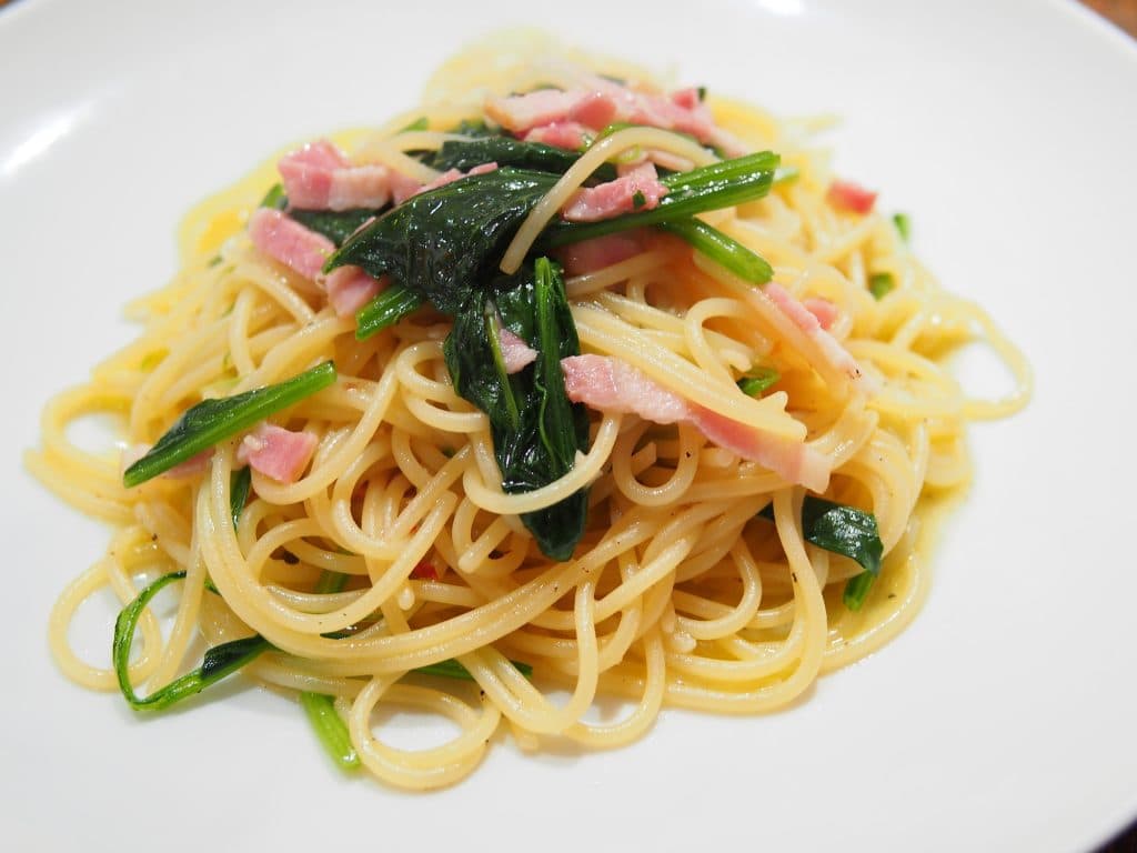 今回は、ワンパンで作れる!!旬のほうれん草を使用した「ほうれん草とベーコンの豆乳スープパスタ」について紹介していきます。