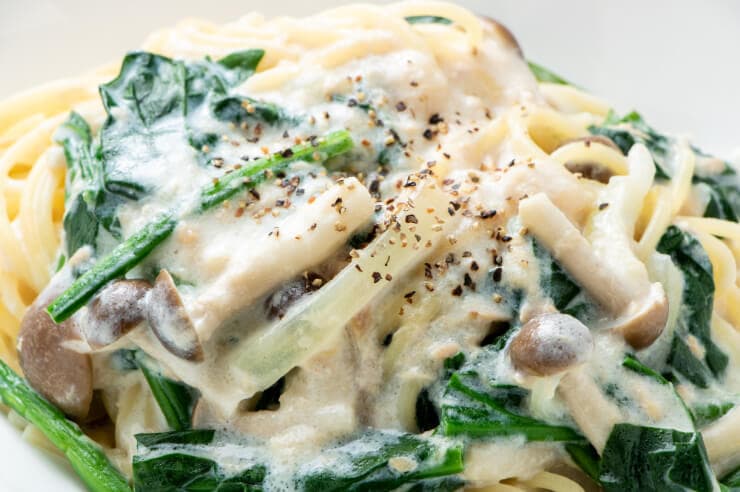 ほうれん草としめじのクリームスパゲッティは、自宅で簡単に作れる料理です。