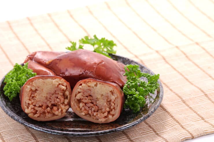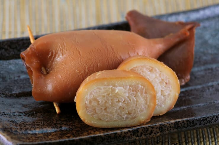 イカの胴体は、中が空洞になっており、もち米を詰めて加熱するのに非常に適しています。