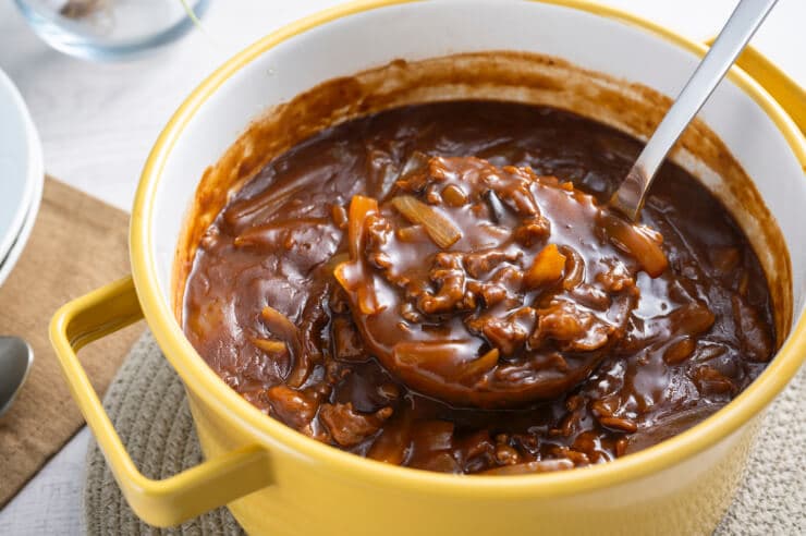 カレーライスほどの辛さはなく、こどもから大人まで親しまれる味わいです。現在では、レトルト製品も多数販売され、手軽に楽しめる洋食として定着しています。