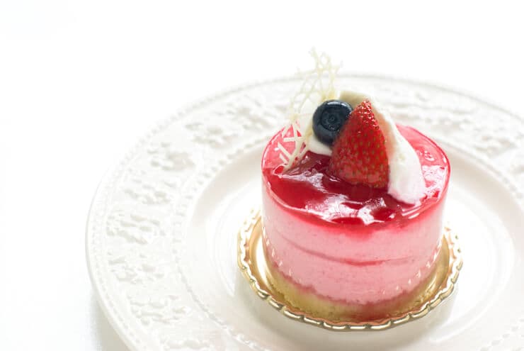 ストロベリーやラズベリーのピューレをたっぷり使ったムースケーキは、ふんわり軽くてなめらか。ひんやり冷えたムースが舌の上でとける感覚は、まさに夏だけのご褒美。グラサージュ(つや出しソース)で見た目も華やかに。