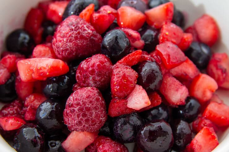 冷凍フルーツは室温で10〜15分ほど置いて、軽く柔らかくなった状態で使います。
