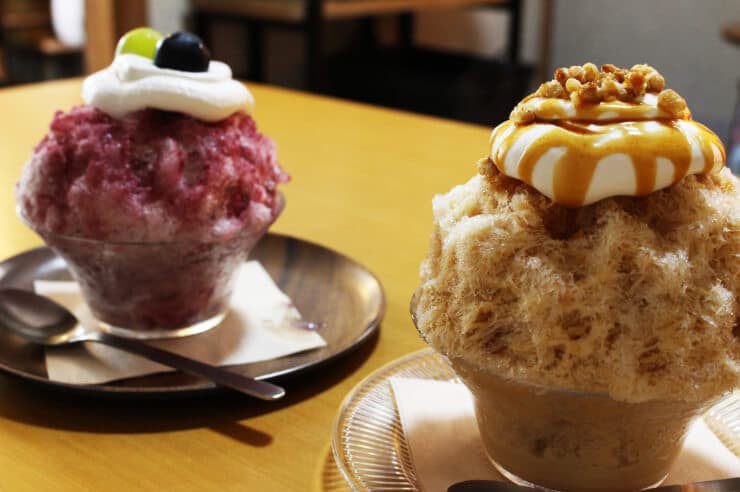 宮崎のマンゴー、山梨の桃、長野のぶどうなど、旬の果物を丸ごと使った贅沢系かき氷が人気。映える見た目とフレッシュな味わいで注目されています。