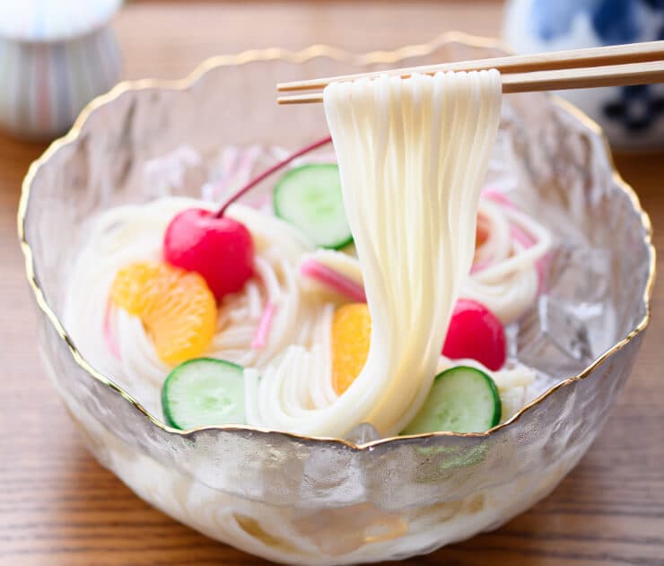 甘いものが好きな子どもたちにとって、そうめんだけでは少し物足りない。そこに彩りと遊び心を添える目的もあるのです。