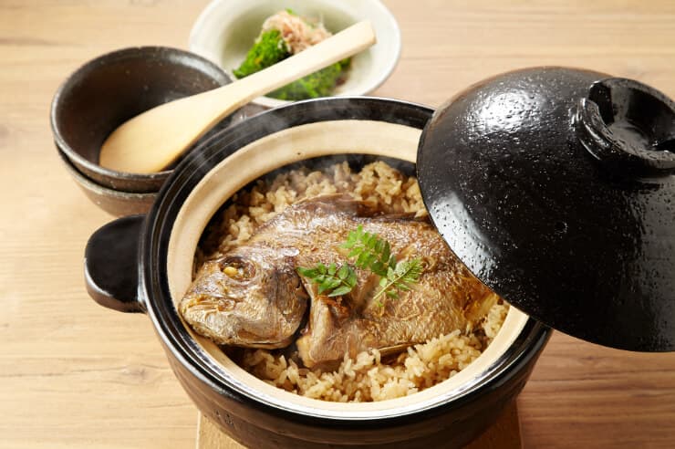 愛媛の鯛めしは2種類あり、焼いた鯛を炊き込む「松山鯛めし」と、生の鯛の刺身を特製の鯛出汁に浸してご飯にかける「宇和島鯛めし」があります。どちらも鯛出汁がベースとなり、地域ならではの味わいが楽しめます。