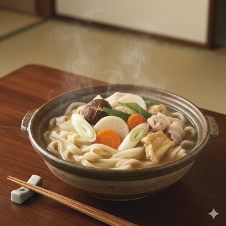主に、埼玉県北部(群馬寄りの地域)で親しまれてきた郷土料理で、幅広に切った生のうどんを下ゆでせず、野菜と一緒に直接煮込むのが最大の特徴です。