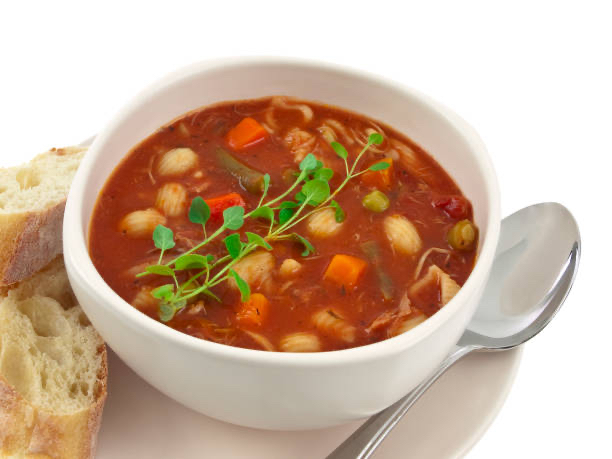 トマトをベースに玉ねぎ、にんじん、セロリ、じゃがいも、ズッキーニ、豆類、パスタなどを組み合わせ、うま味と栄養が凝縮されています。