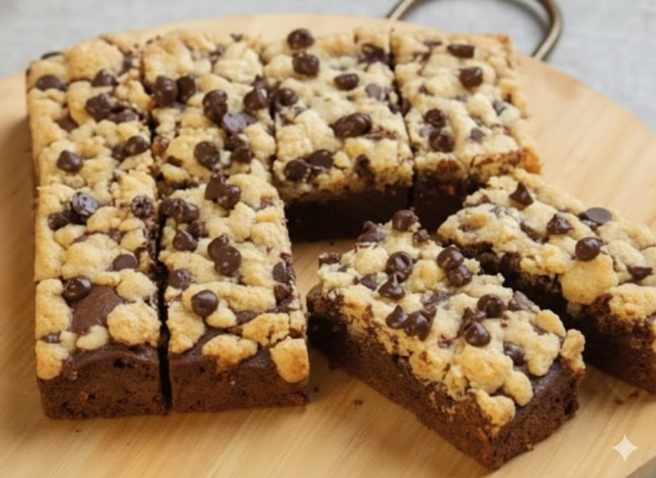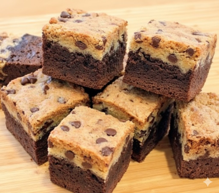 しっとり濃厚なブラウニー生地の上に、サクッと香ばしいクッキー生地を重ねて焼き上げるのが定番で、チョコレートのコクとバターの風味、異なる食感の対比が最大の魅力です。