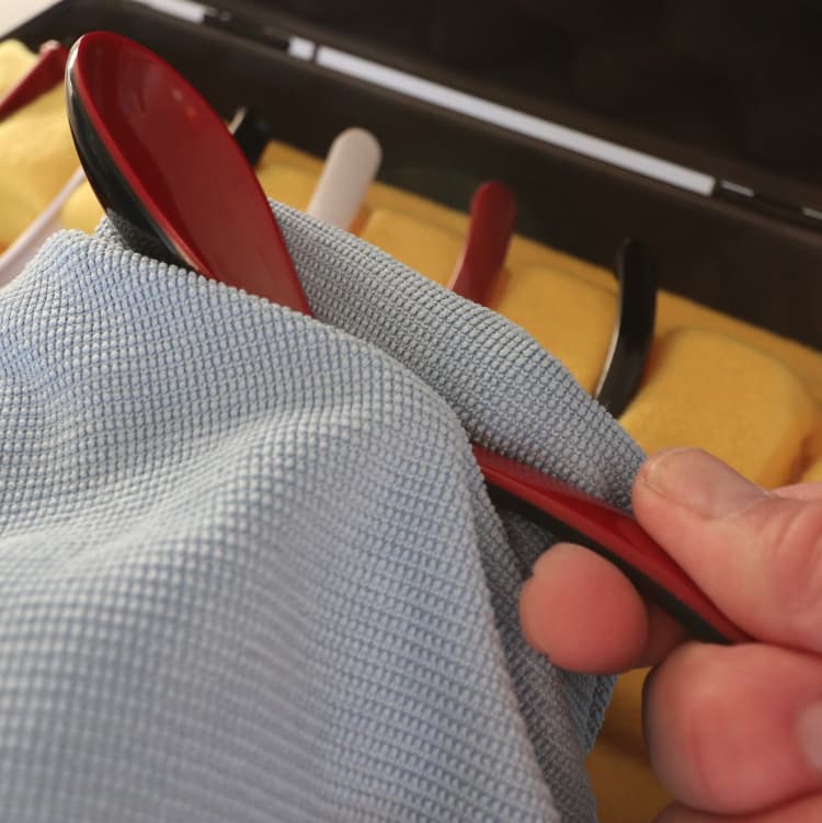 スペースが限られている場合はレンゲは立てておくとすっきりします。