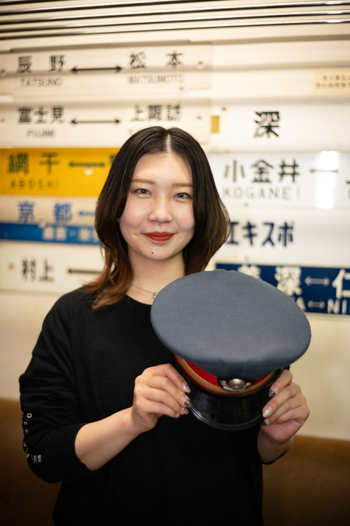 下町情緒があふれる日本橋人形町。旅の風情が漂う「キハ」のカウンターに立つ聖香(きよか)さんにとって、鉄道好きであろうとなかろうと、お客様はお客様だ。マニアックな話題で盛り上がるときは、客同士の会話を静かに見守る。どんな人でもここちよく過ごせる空気をつくり出している。