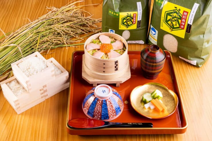 わっぱ飯のコメは、品種改良されていない昔からの在来品種で減農薬特別栽培で育てられたお米を新潟の農家さんから直接お取り寄せしているお米です。