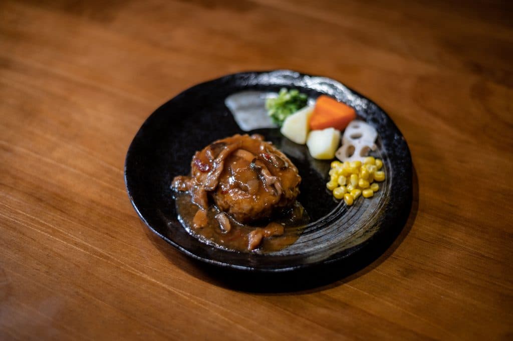 旨味たっぷりのきのことジューシーなハンバーグが絶妙にマッチした美味しい一品です。新鮮なきのこを贅沢に使用し、ハンバーグに練り込むことで、香り高くコクのある味わいが楽しめます。ソースとハンバーグの組み合わせが絶妙で、満足感のある一品となっています。